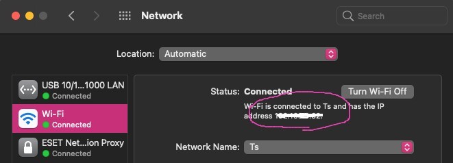 - Setting > Wifi > tap (i).