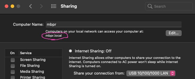 - System preferences > Sharing.