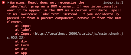 <input> doesn’t have any attributes called labelText so React is complaining about it.